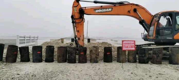 कञ्चनपुर, १७ पुष : कञ्चनपुर स्थित महाकाली नदीमा निर्माणाधिन चारलेन पक्की पुल निर्माण कम्पनीले पहुँच मार्ग खनेको छ । कुमार सिएफईसी जोईन्ट भेन्चरले बुधबार महाकाली पुल वारीपारी सडक खनेर पहुँच मार्ग खनेको हो । पुलको दुर्वतर्फ खन्दा एकतर्फ सडक बन्द भएको छ ।