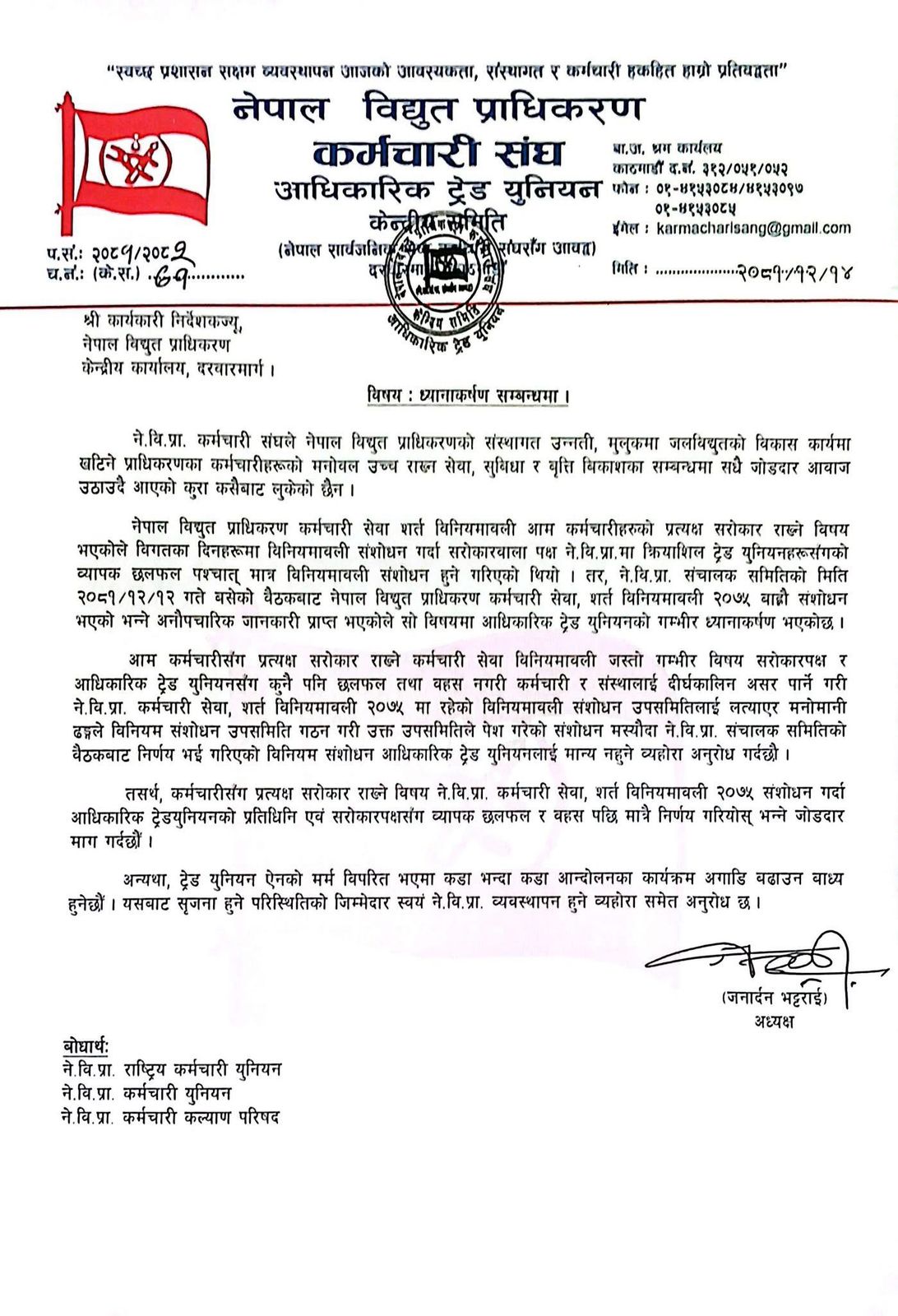 कर्मचारी संगठनहरूले उक्त निर्णयलाई गलत भन्दै तत्काल फिर्ता लिन माग गरेका छन्। उनीहरूले निर्णय कार्यान्वयन भए प्राधिकरणमा राजनीतिक हस्तक्षेप बढ्ने चेतावनी दिएका छन्।