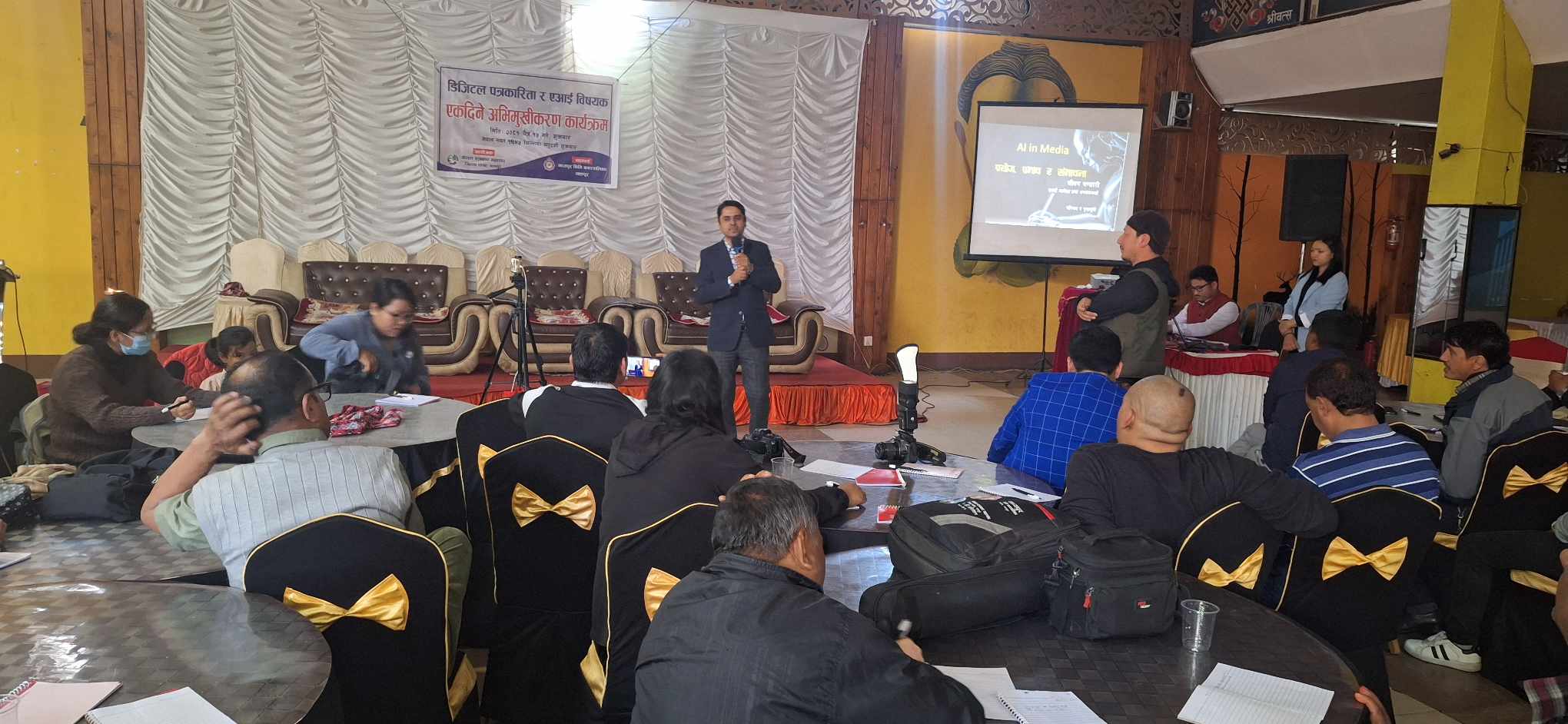 अभिमुखीकरणमा डिजिटल पत्रकारिता सम्बन्धी प्रशिक्षण विरेन्द्र धामी ले र एआईसम्बन्धी प्रशिक्षण जिवन भण्डारी ले दिएका थिए। कार्यक्रमले भक्तपुरका सञ्चारकर्मीहरूलाई डिजिटल युगसँग तालमेल मिलाउन महत्वपूर्ण योगदान पुर्याउने अपेक्षा गरिएको छ।