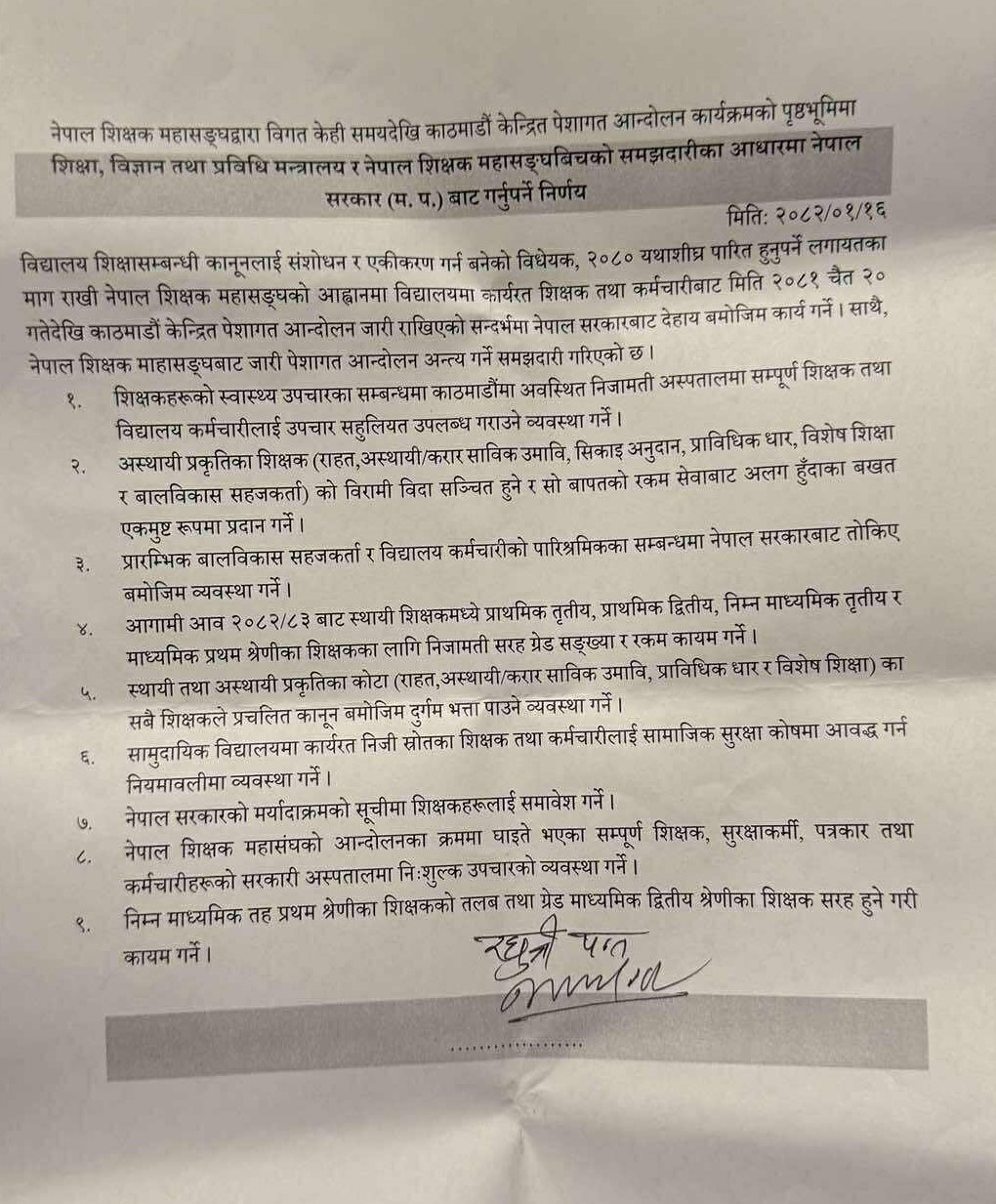 शिक्षक महासंघसँग सहमति (नौ बूँदे सहमतिसहित)