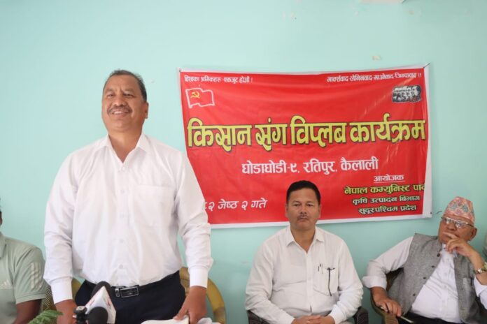 पहलमानपुर, । जिल्लाको घोडाघोडी नगरपालिका वडा नम्बर ९ मा नेपाल कम्युनिस्ट पार्टी द्वारा आयोजित किसानसँग विप्लव कार्यक्रम शुक्रबार सम्पन्न भएको छ। कार्यक्रममा नेकपा महासचिव नेत्रविक्रम चन्द ‘विप्लव’ ले स्थानीय किसानहरूसँग संवाद गर्दै कृषि प्रणालीमा आमूल परिवर्तन आवश्यक रहेको धारणा व्यक्त गरे।