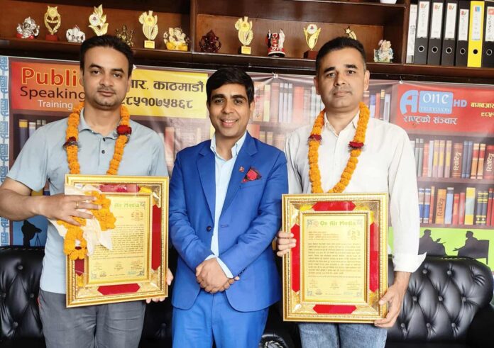 अन एयर मिडियाले शर्मा र आचार्य सहितका सञ्चारकर्मीहरूलाई वार्षिकोत्सवका अवसरमा सम्मान गरेको हो ।