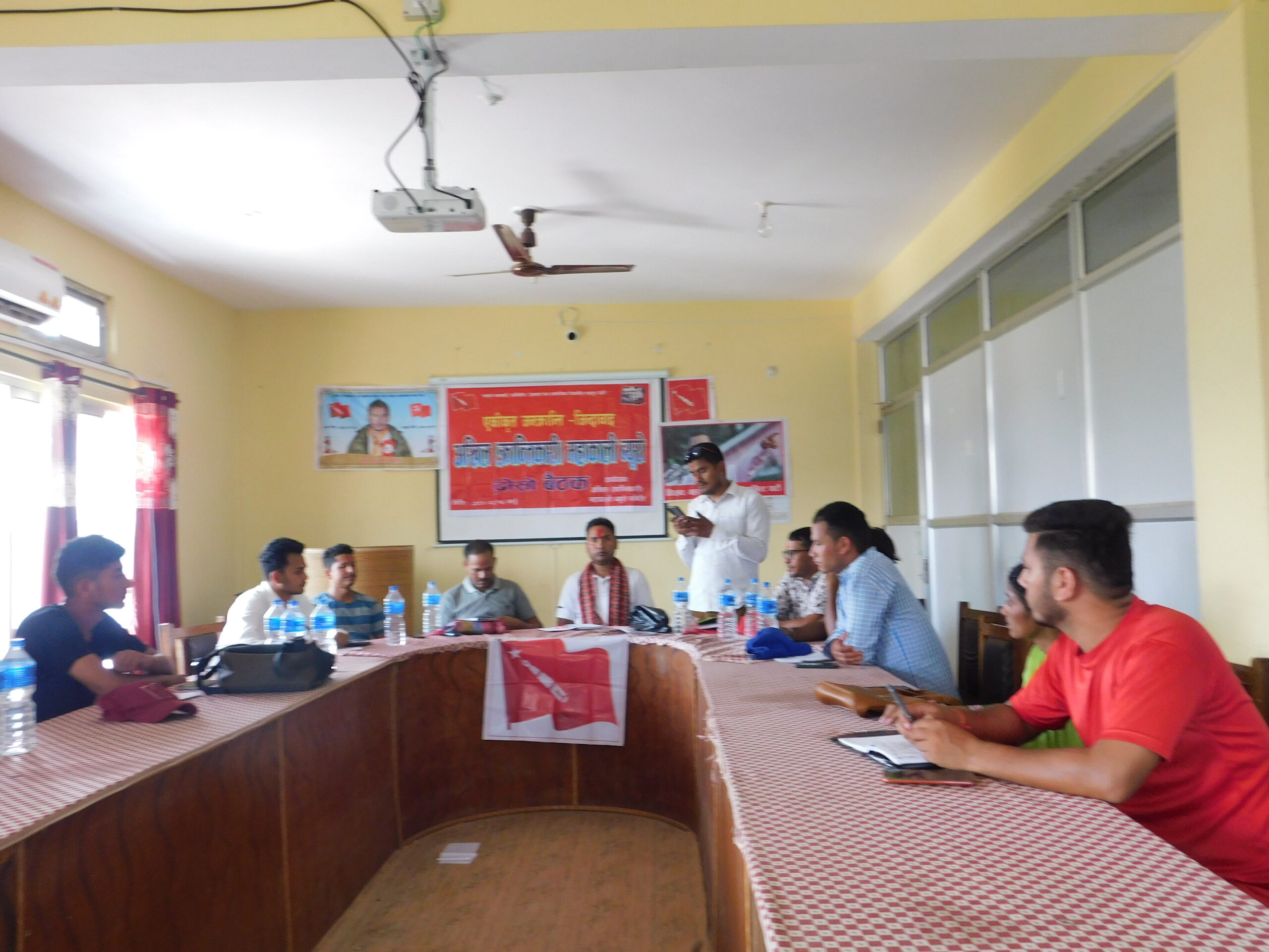 शंकर सीको अध्यक्षतामा सम्पन्न बैठकमा नेकपा कञ्चनपुर जिल्ला इन्चार्ज विराट सी, नेकपा केन्दीय स्कुकिङ विभाग सदस्य वीरेन्द्र सी,नेकपा कञ्चनपुर जिल्ला सदस्य कमल सी, युवा संगठन नेपाल कञ्चनपुरका अध्यक्ष भरत सी लगायत संगठनका केन्द्रीय सदस्यहरु र ब्युरो सदस्यहरुको सहभागिता रहेको थियो ।