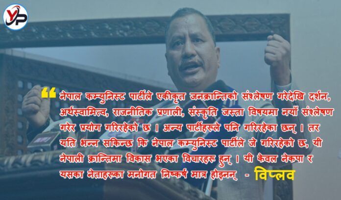 नेपाल कम्युनिस्ट पार्टीले एकीकृत जनक्रान्तिको संश्लेषण गरेदेखि दर्शन, अर्थस्वामित्व, राजनीतिक प्रणाली, संस्कृति जस्ता विषयमा नयाँ संश्लेषण गरेर प्रयोग गरिरहेको छ । अन्य पार्टीहरूले पनि गरिरहेका छन् । तर यति भन्न सकिन्छ कि नेपाल कम्युनिस्ट पार्टीले जे गरिरहेको छ, यी नेपाली क्रान्तिमा विकास भएका विचारहरू हुन् । यी केवल नेकपा र यसका नेताहरूका मनोगत निष्कर्ष मात्र होइनन् । यसभित्र कुनै न कुनै रूपले सङ्घर्षरत क्रान्तिकारी वर्ग, प्रवृत्ति र नेताहरूका विचार पनि केन्द्रीत भइरहेका हुन्छन् र छन् । यदि ती भइसकेको छैन या हुन बाँकि छन् भने पनि सङ्घर्ष, अनुसन्धान र प्रयोगका बिचबाट हुन जान्छन् । यसो भनेर नेकपाले अरूबाट सिक्न र लिन हुँदैन भन्ने कदापी होइन । हरेकका सही विचारहरूलाई ग्रहण गर्नै पर्छ । पार्टीको कुरा मात्र होइन सही विचार जनताका जुनकुनै सदस्यबाट पनि लिनु पर्छ । जब हामी एकताबद्ध र मोर्चाबद्ध हुन चाहने प्रवृत्ति, पार्टी र नेताहरू फराकिलो प्रकारले अर्काका असल विचारहरू ग्रहण गर्न तयार हुन्छौं, एकता र मोर्चा निर्माण गर्न सहज हुन्छ हामी सफल हुन सक्छौं । हाम्रो पार्टीले यही विचार र मार्गलाई पकड्ने छ ।