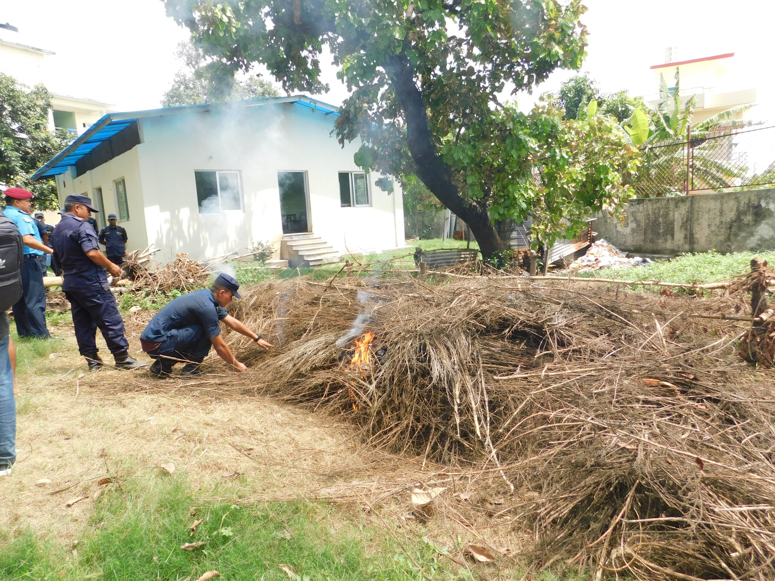 गाँजाको बिरुवाहरू जलाउँदै प्रहरी